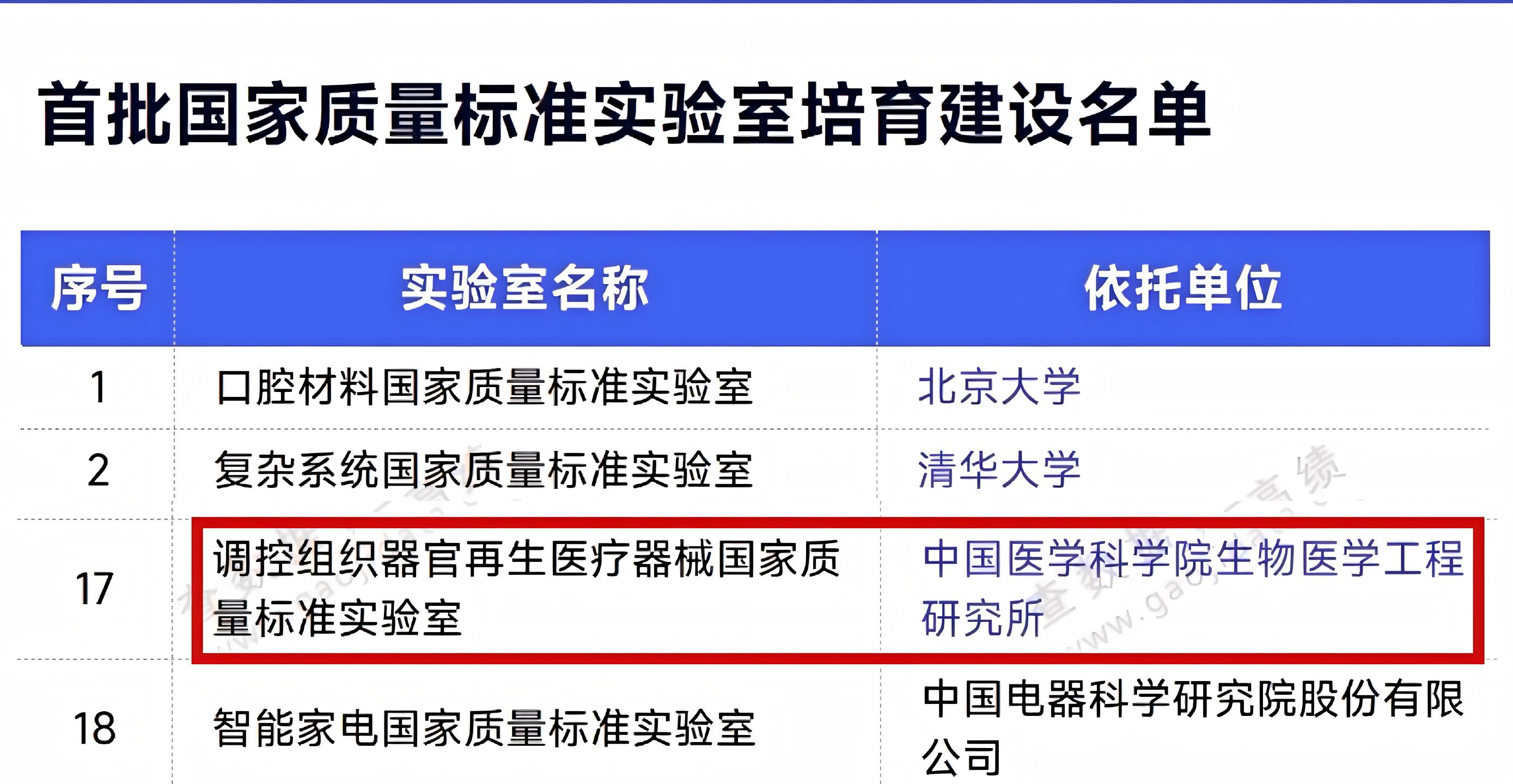 医工所入选首批国家质量标准实验室