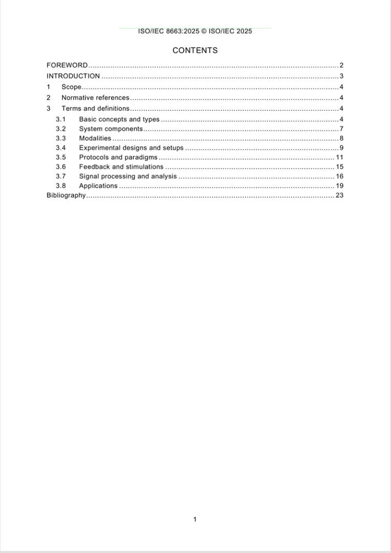ISO/IEC 8663:2025《信息技术 脑机接口 术语》国际标准目录