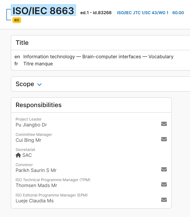 ISO/IEC 8663:2025《信息技术 脑机接口 术语》国际标准信息页