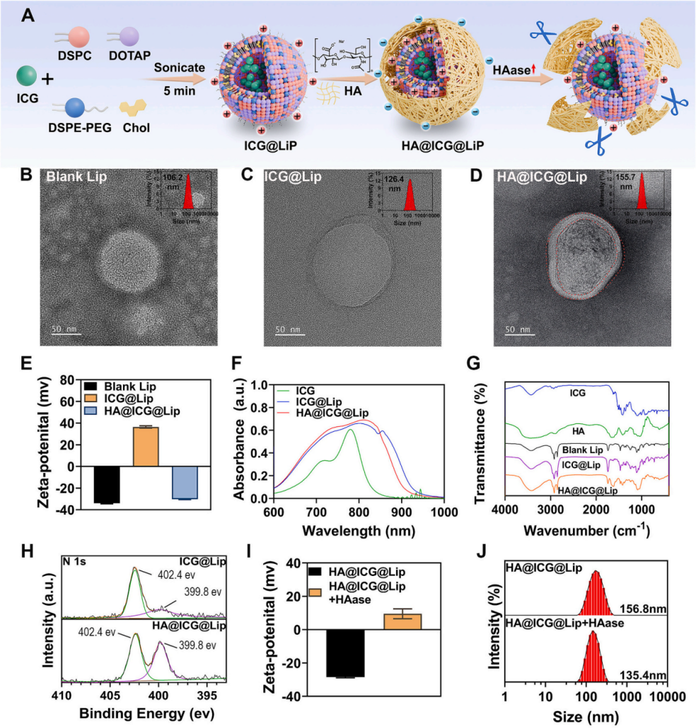 图2:HA@ICG@Lip纳米平台的合成与表征。