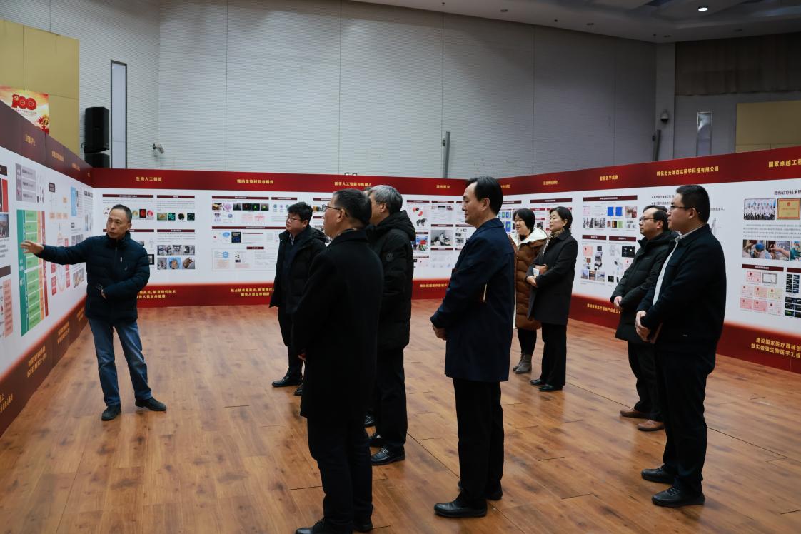 国家康复辅具研究中心郑远长书记一行首先参观了医工所科创成果展。医工所党委王向华书记介绍了国家医学科技创新体系核心基地天津基地建设情况,医工所发展历程及以国家卓越工程师团队为代表的高层次人才队伍建设情况。戴建武执行所长详细介绍了北京协和医学院生物医学工程一流学科建设情况,以先进医用材料与医疗器械全国重点实验室为核心的国家及省部级科研技术平台建设情况,以及医工所面向人民生命健康在组织器官再生、微纳生物材料与器件、脑机交互与智能装备、导航定位与磁刺激机器人、智能医学成像等领域的科研业务情况。